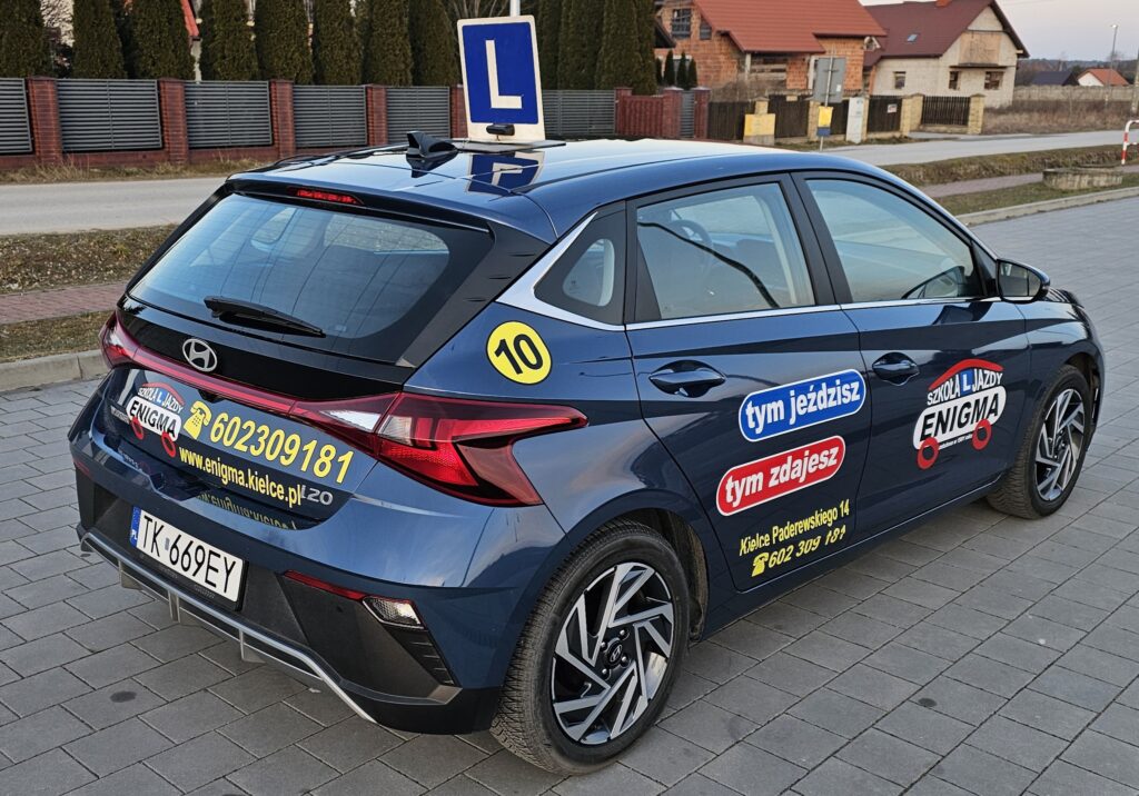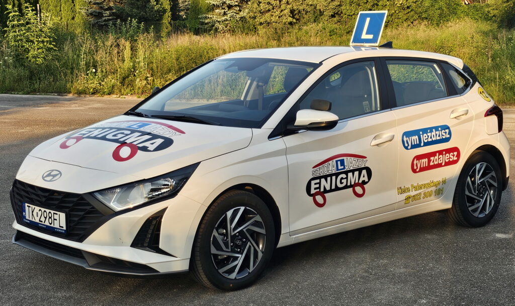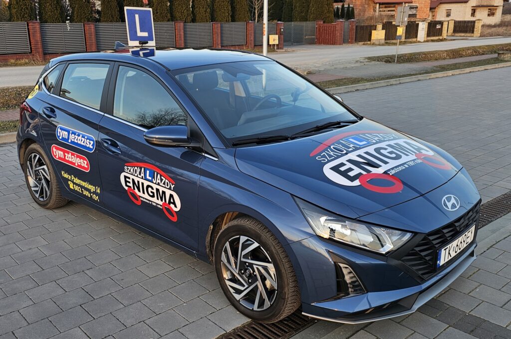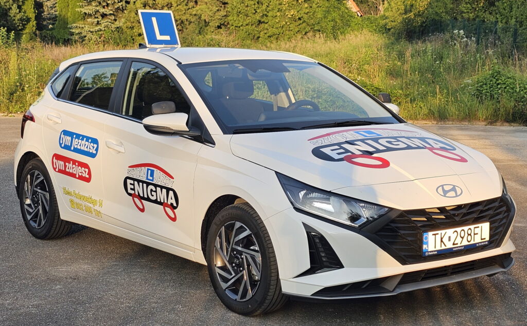 Nowy HYUNDAI i 20 już jest we flocie Szkoły Jazdy ENIGMA. Jako pierwsza szkoła jazdy w Kielcach wprowadziliśmy do szkolenia w I/2025 nowego Hyundaia i20.