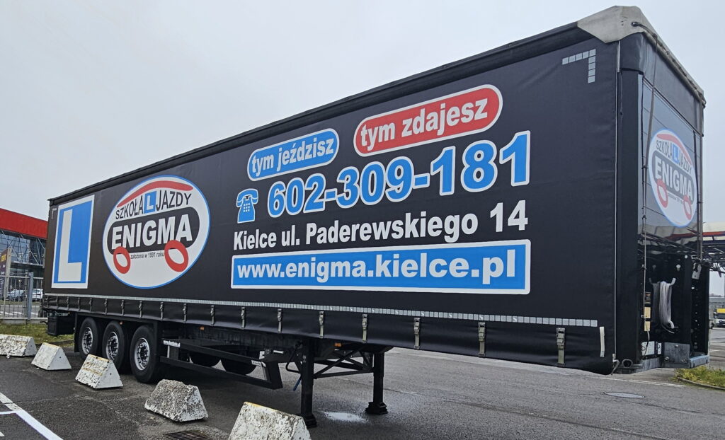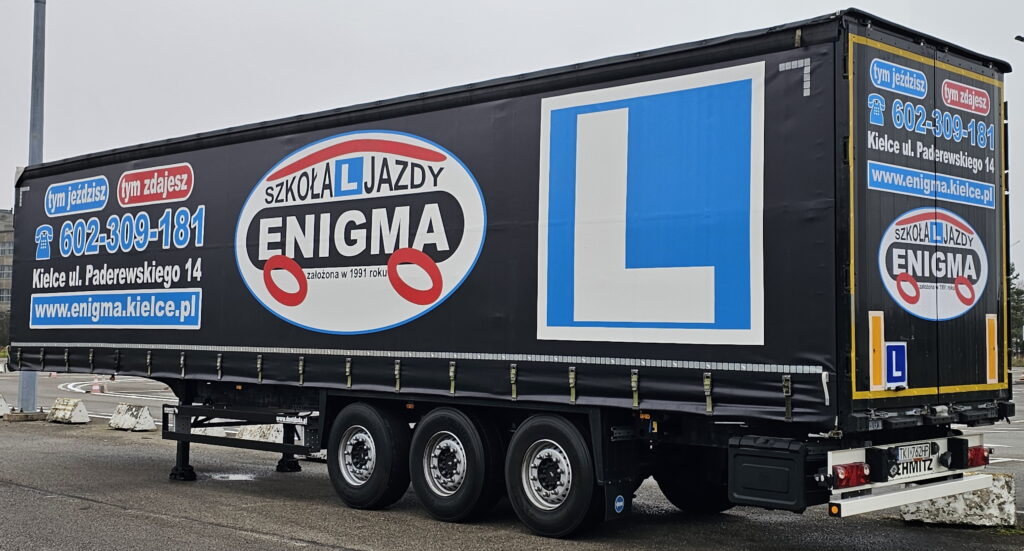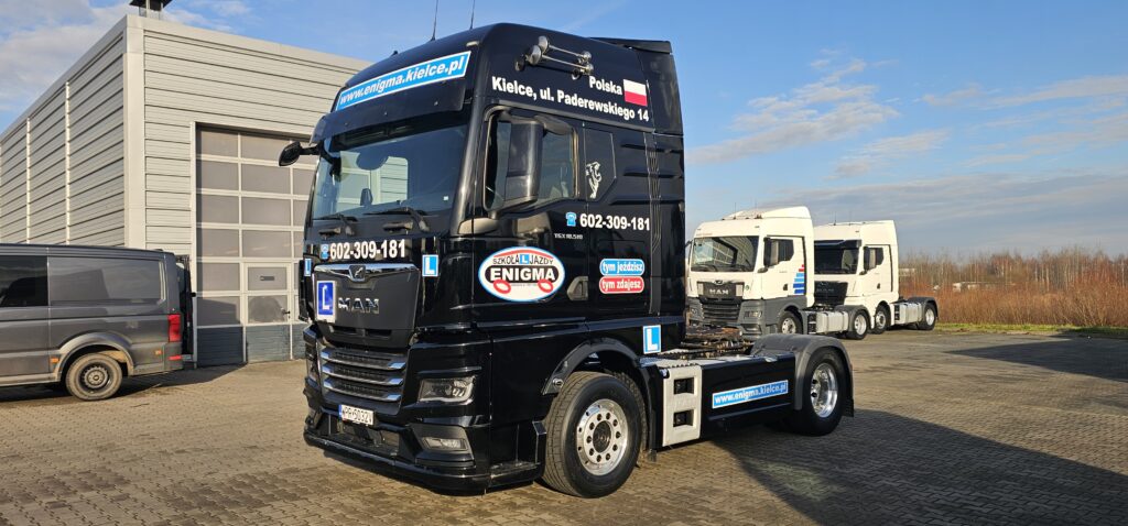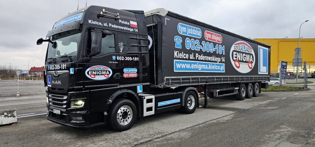 UWAGA – Od stycznia 2026 szkolenia i egzaminowania na kategorię C+E będą odbywały się tylko i wyłącznie na ciągniku siodłowym i naczepie. Szkoła Jazdy ENIGMA jako pierwszy ośrodek w województwie świętokrzyskim posiada już nowy zestaw do nauki jazdy. Na życzenie naszych kursantów podstawiamy nasz zestaw na egzamin państwowy do WORD Kielce. Kursancie pamiętaj: tylko u nas TYM JEŹDZISZ – TYM ZDAJESZ.